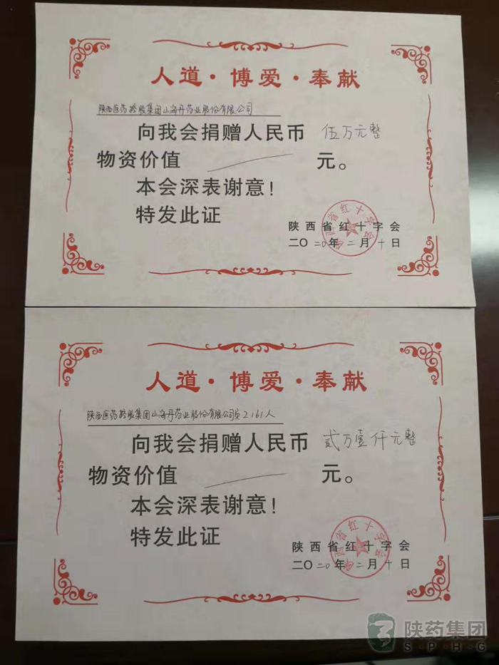 近期,一場(chǎng)突如其來(lái)的新型冠狀病毒肺炎疫情牽動(dòng)著全體山海丹人的心。災(zāi)難無(wú)情,公司有愛(ài),作為一個(gè)有責(zé)任、有擔(dān)當(dāng)、有愛(ài)心的企業(yè),陜西醫(yī)藥控股集團(tuán)山海丹藥業(yè)股份有限責(zé)任公司黨委向全體員工發(fā)出了捐款倡議書(shū),全員上下積極響應(yīng),踴躍捐款。2月10日,公司將161名員工的愛(ài)心捐款21000元以及公司捐助的50000元經(jīng)由陜西省紅十字會(huì)平臺(tái)定向捐贈(zèng)給陜西省新冠病毒防控指定醫(yī)院,用于購(gòu)買(mǎi)醫(yī)護(hù)人員所需防疫物資,陜西省紅十字會(huì)對(duì)于公司義舉給予了充分肯定。
